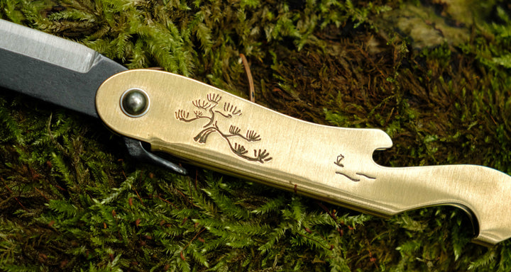 Mujun Mt. Fuji – žepni nož z zgodbo. Miniaturna razglednica Japonske v vaši roki: ostrina Shirogami #2 jekla, medeninast ročaj z odpiračem in izrezljana gora Fuji na rezilu. Več kot nož – zbirateljski kos, pogovorni predmet in popolno darilo za ljubitelje japonske obrti.